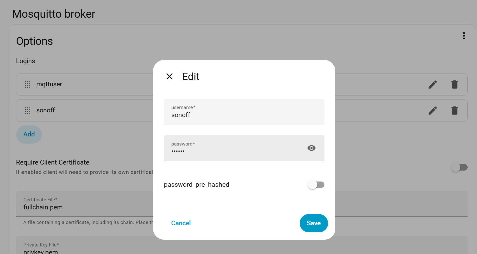 2. Configure the MQTT Broker in Home Assistant as described earlier, and create the username and password.