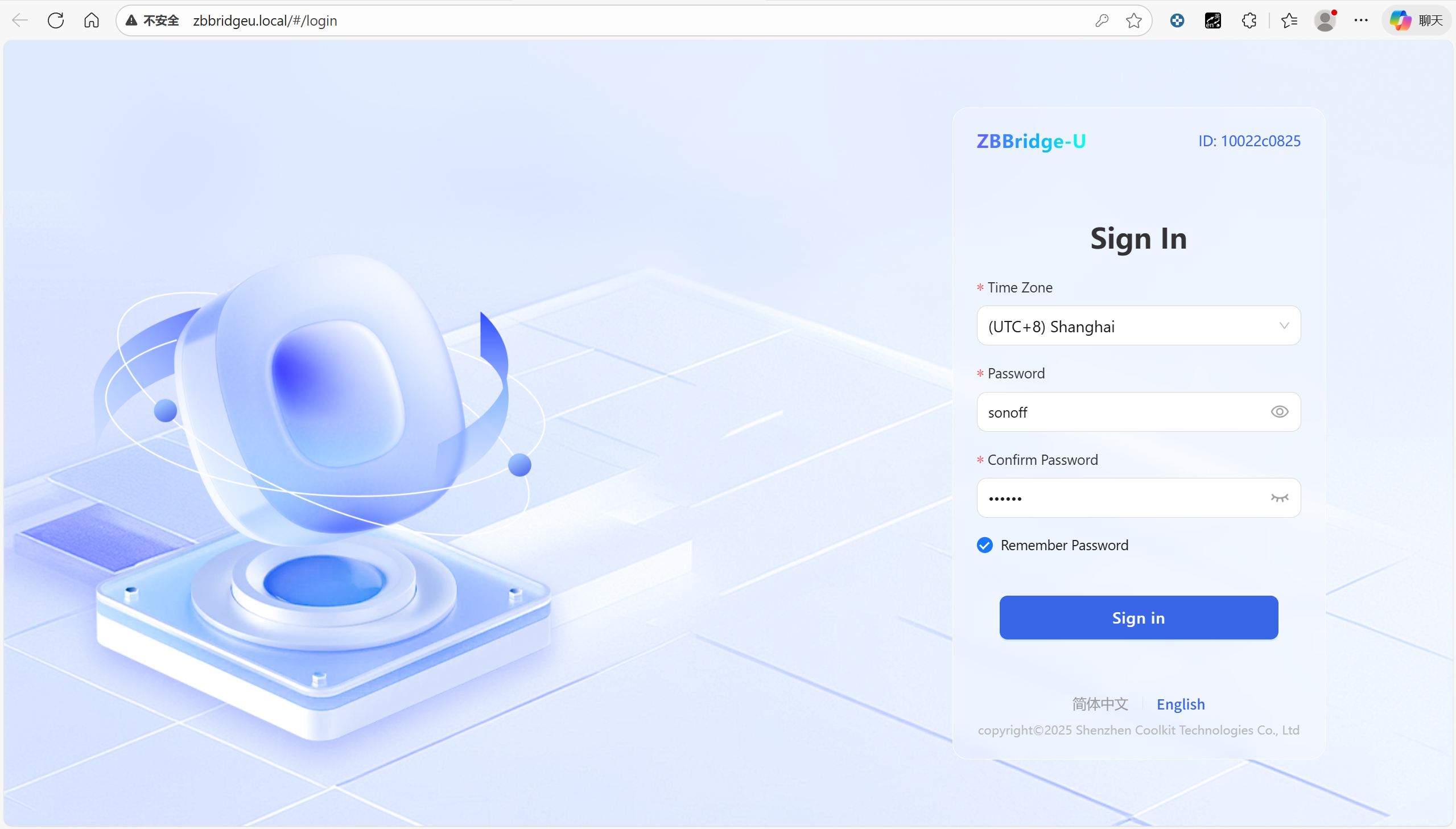 Open your preferred web browser and visit the local web panel at: http://zbbridgeu.local/