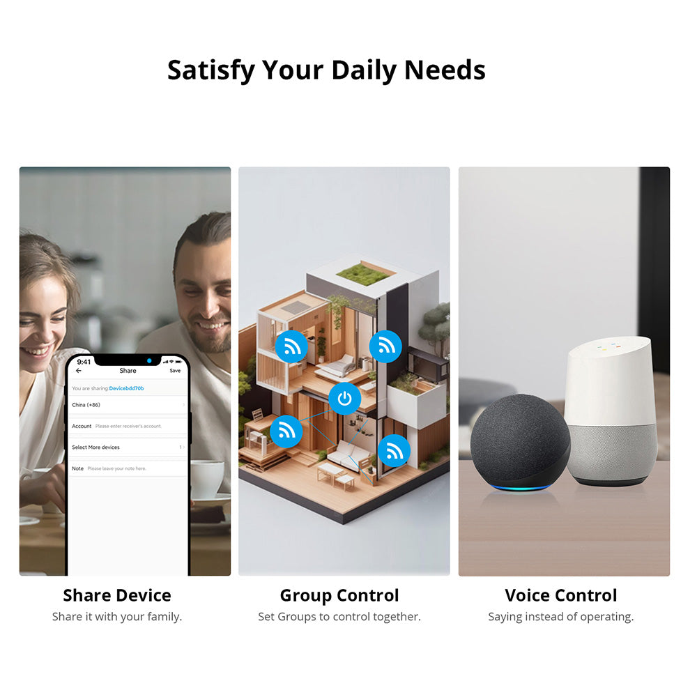 【Group Control – Smarter Management of Multiple Devices】Easily group your devices by room or scene, and control multiple switches simultaneously via app. Save time and simplify your daily routines.