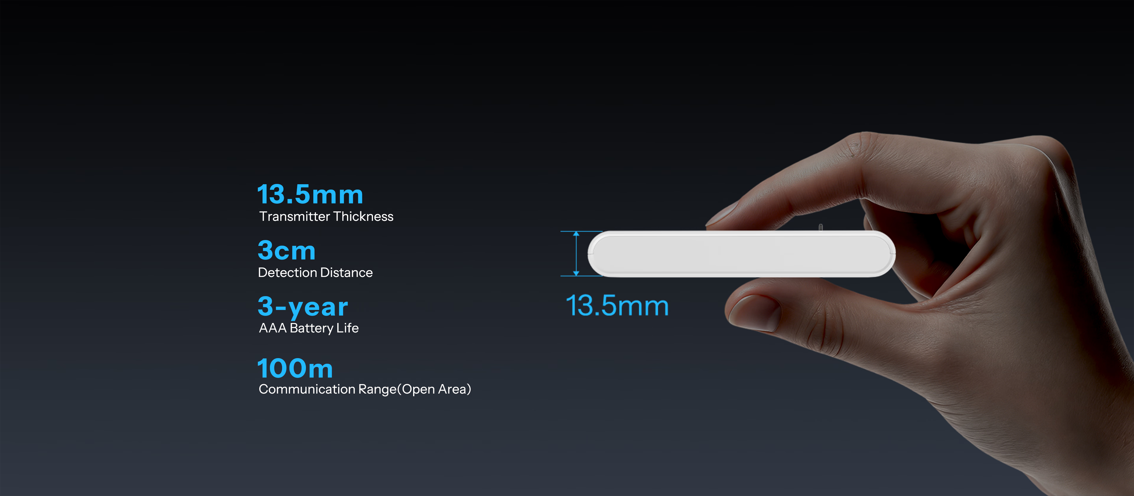 The device uses 2 AAA batteries and supports a 3-year battery life.