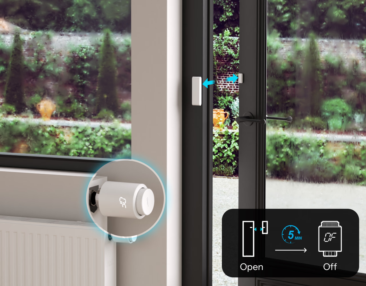 Use door and window status over time as a smart trigger—so your devices such as a thermostat turn off automatically when windows are left open, saving energy without extra effort.