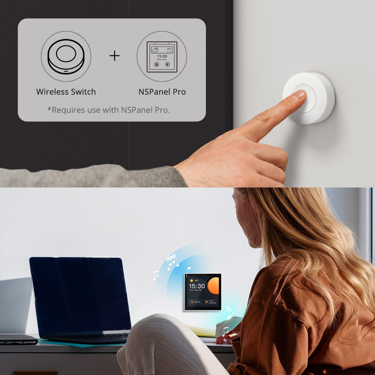 Connect the Wireless Switch with SONOFF smart wall switches and you can turn off the light downstairs after going upstairs.