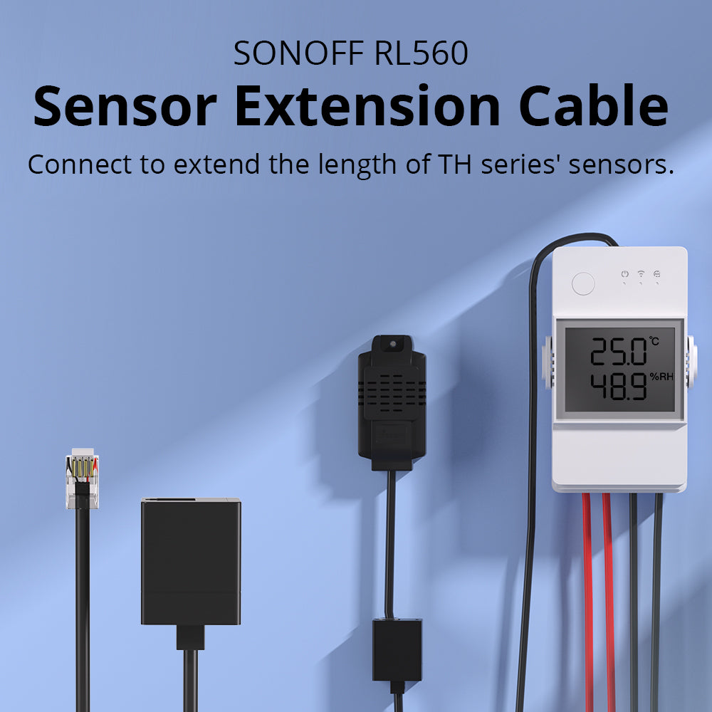 El cable de extensión del sensor SONOFF RL560 5M está diseñado para sensores RJ9 como THS01, WTS01 y MS01. Extienda THS01/WTS01 hasta 60m y MS01 hasta 10m. Cuenta con un conector RJ9 para conexiones estables y enchufables en caliente.