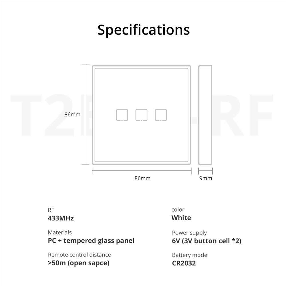 SONOFF T2EU-RF – Panel de Pared Adhesivo Mando a Distancia Inalámbrico RF 433MHz 1-3 Canales
