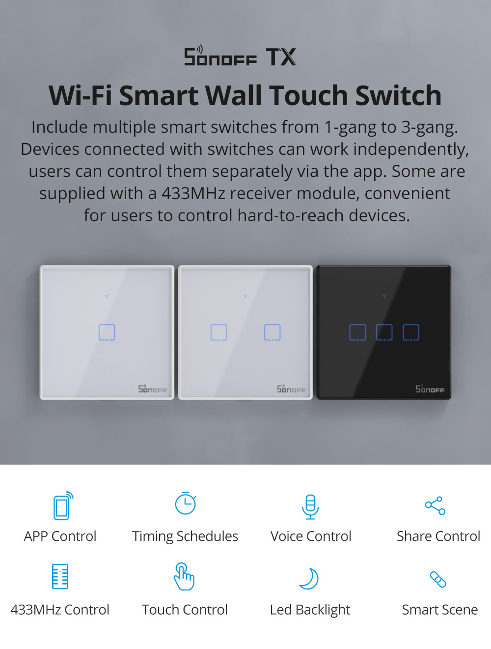 Interrupteurs muraux WiFi SONOFF série TX UE