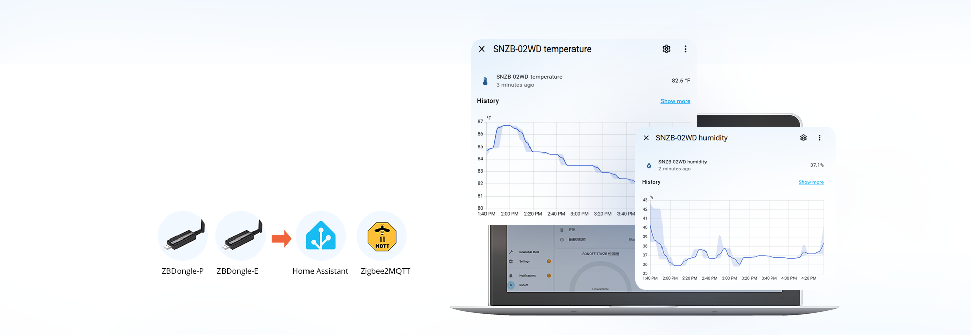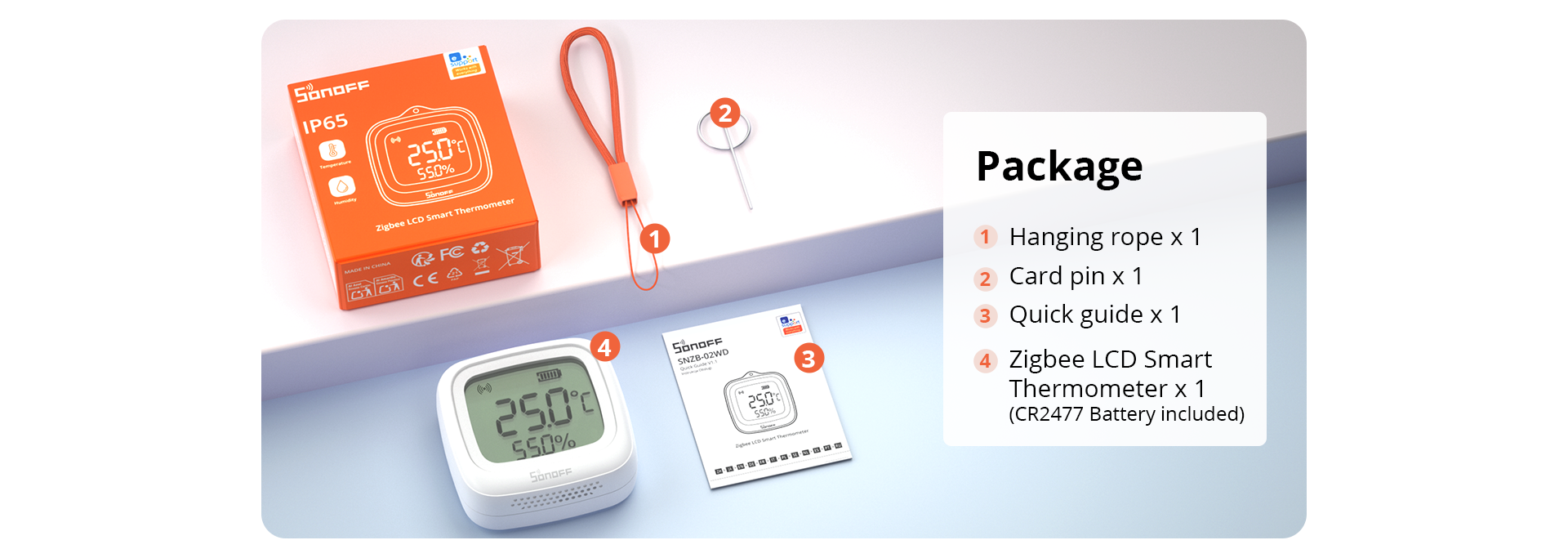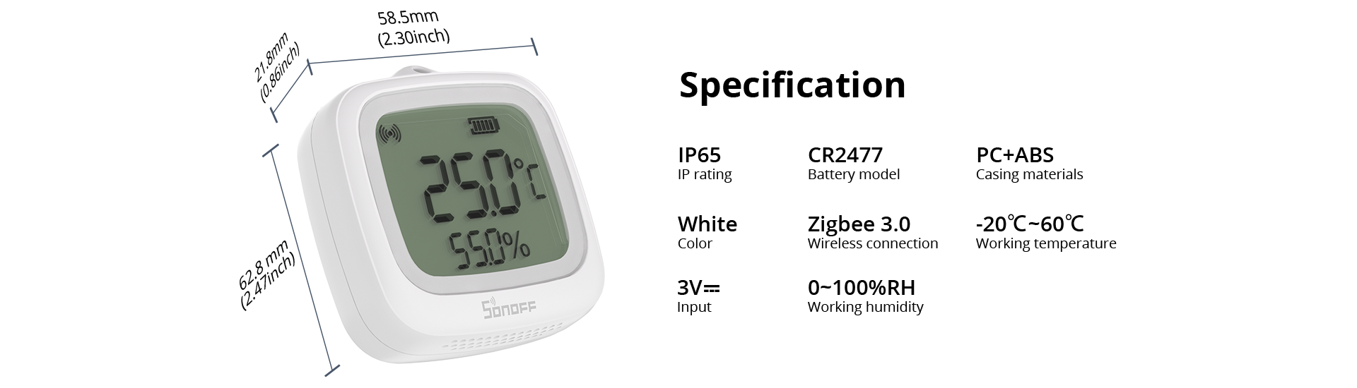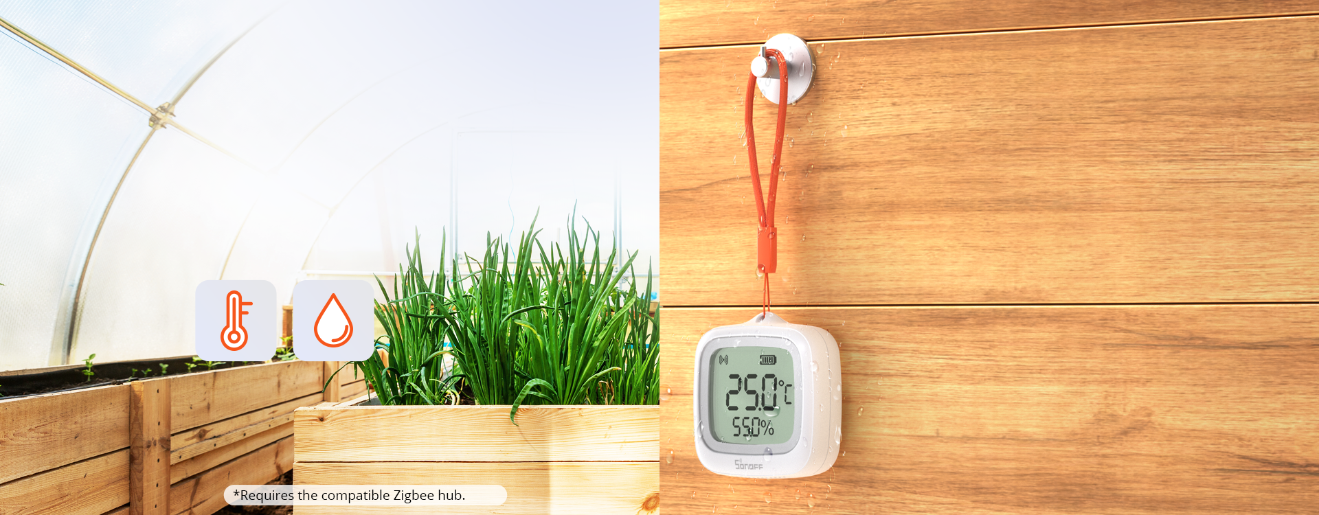 SONOFF SNZB-02WD è un sensore di temperatura e umidità Zigbee 3.0 con certificazione IP65 e un display LCD da 2,2" per il monitoraggio in tempo reale in ambienti interni o umidi. Il suo avanzato involucro impermeabile e la membrana traspirante garantiscono prestazioni stabili in ambienti umidi, nebbiosi o esterni, mentre la precisione di livello svizzero offre una accuratezza di ±0,2°C e ±2% UR. Ideale per camere da letto, serre, cucine e bagni. Puoi integrarlo perfettamente con SONOFF iHost, NSPanel Pro, ZBBridge-P/U, ZBDongle-E/P e altri ecosistemi Zigbee per automatizzare il controllo del clima e accedere ai dati storici tramite l'app eWeLink.