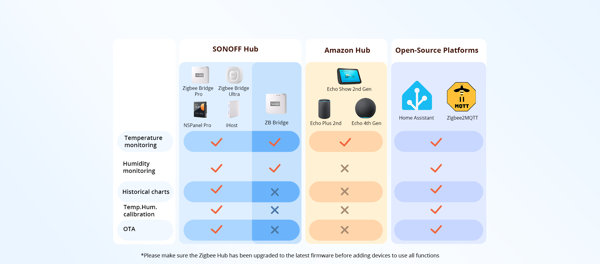 【Zigbee 3.0 Compatible】Supporta hub Zigbee 3.0 tra cui SONOFF iHost, NSPanel Pro, ZBBridge-P, ZBBridge-U, ZBDongle-E e ZBDongle-P.