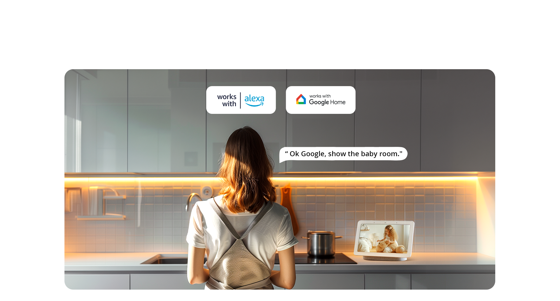 La fotocamera ha un microfono e un altoparlante integrati. Puoi parlare a distanza aprendo il pulsante vocale nell'app mentre guardi il feed in diretta.