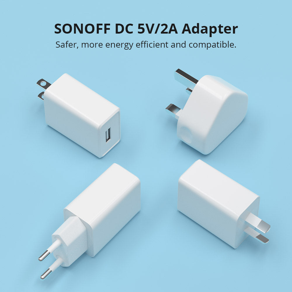 SONOFF DC 5V/2A Adattatore è portatile e soddisfa gli standard DoE Livello VI per una maggiore sicurezza ed efficienza energetica. Perfetto per alimentare dispositivi come SONOFF iHost, L3 Pro Strip Light, CAM Slim, RF BridgeR2 433, ZB Bridge Pro e altro.