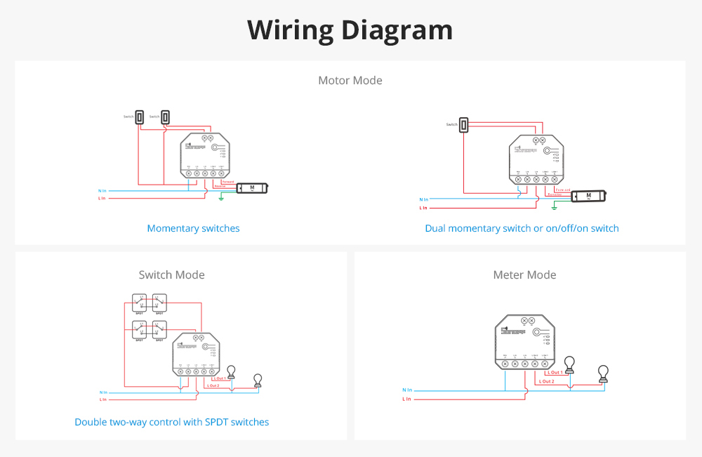 【Controllo dell'Interruttore a Parete Bidirezionale – Flessibile & Compatibile】DUALR3 supporta 6 tipi di rilevamento di interruttori esterni (ad es., rocker, momentaneo, SPDT), rendendolo compatibile con la maggior parte degli interruttori a parete tradizionali. Mantieni il controllo manuale dell'interruttore a parete mentre aggiorni alla funzionalità intelligente.