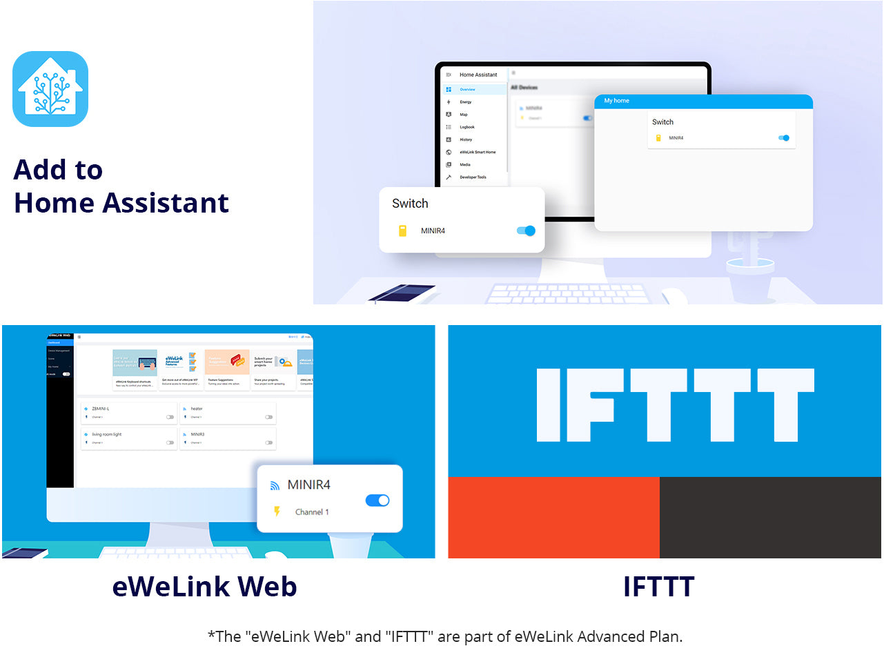 【Funzione Gateway Remoto eWeLink】MINIR4 funge da interruttore intelligente e gateway per “eWeLink-Remote”. Associa con sub-dispositivi come R5 e S-MATE per abilitare il controllo remoto locale tramite segnali eWeLink-Remote, migliorando la tua rete domestica intelligente.