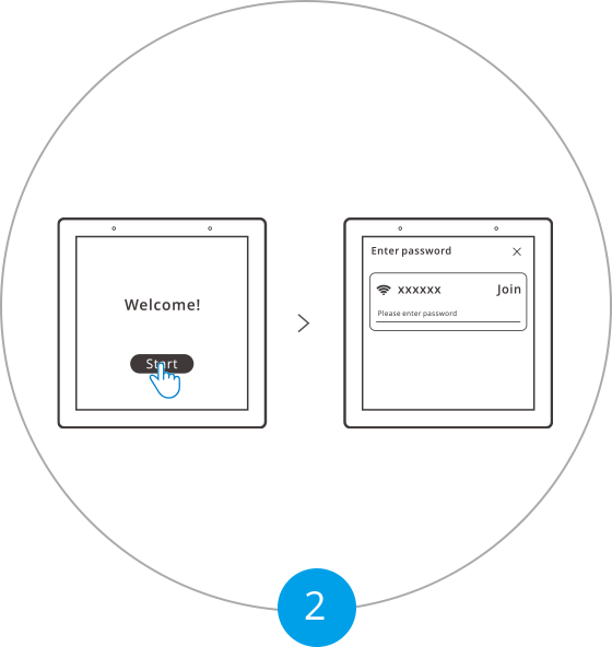 Accendendo, tocca "Start" per selezionare il Wi-Fi e inserire la password. Entra nell'interfaccia principale seguendo le istruzioni.