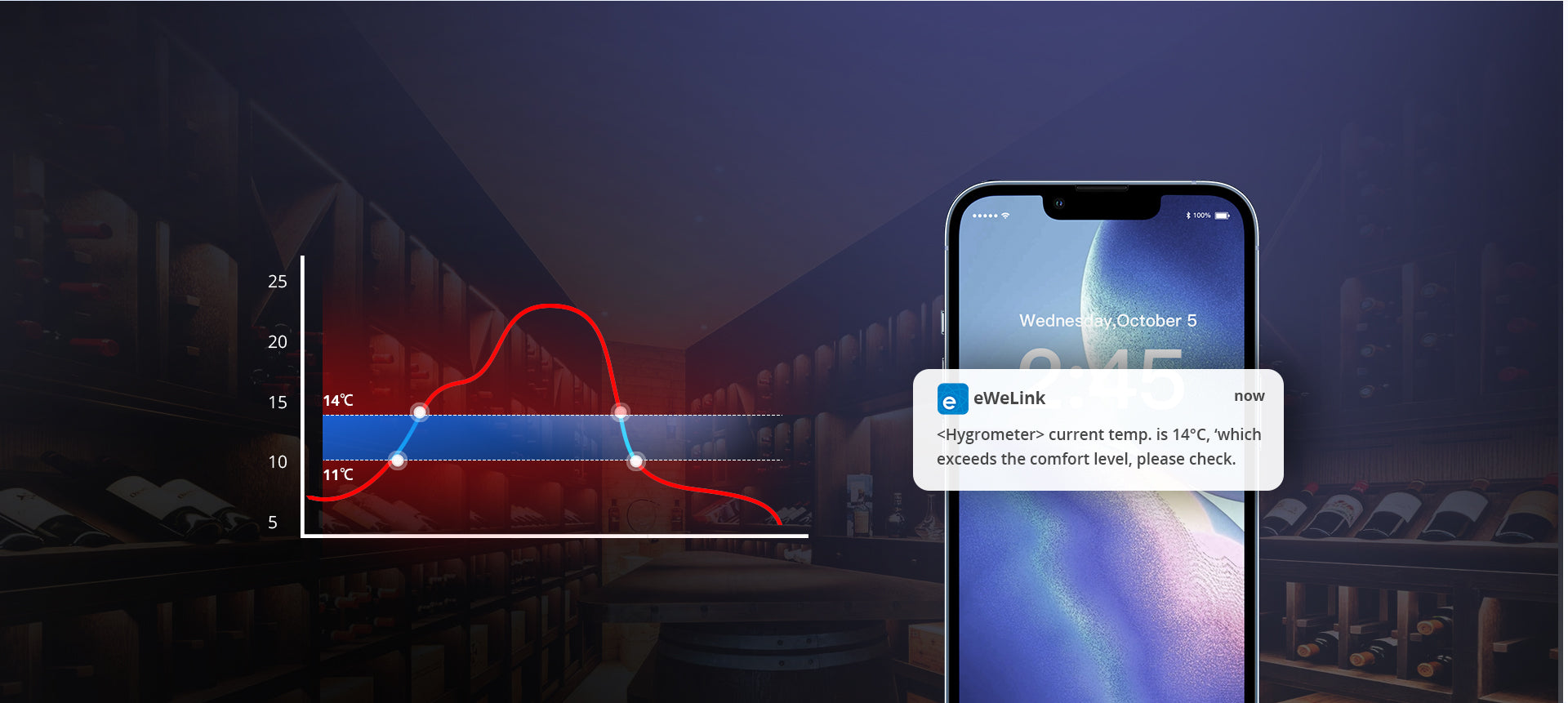 【Avvisi Instantanei dell'App】Ricevi notifiche push sul tuo telefono quando i livelli di temperatura o umidità superano il tuo intervallo di comfort preimpostato.