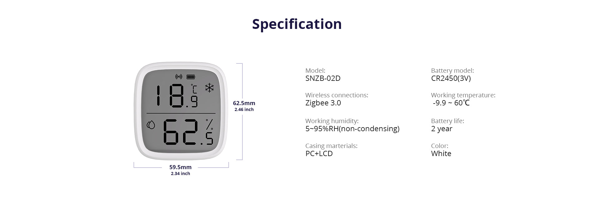 SONOFF SNZB-02D Zigbee LCD Sensore Intelligente di Temperatura e Umidità