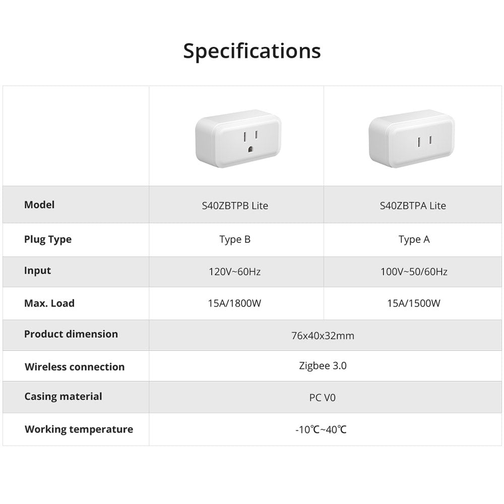 SONOFF Zigbee Smart Plug| Serie iPlug S40 Lite