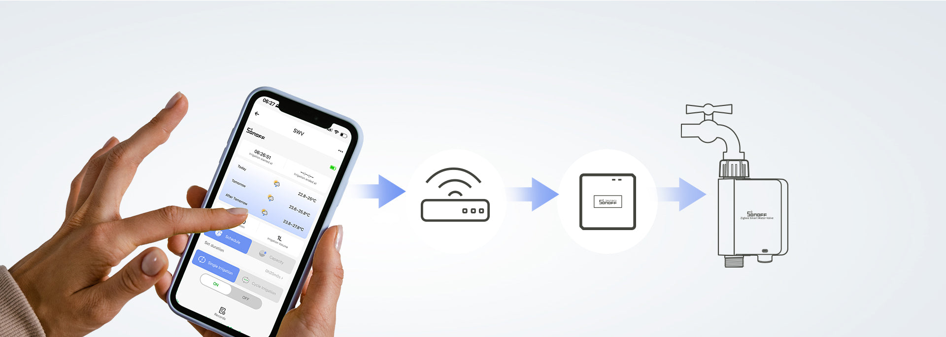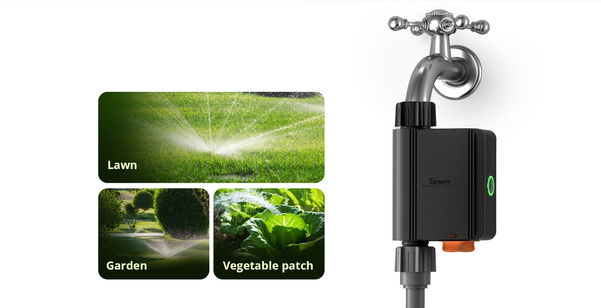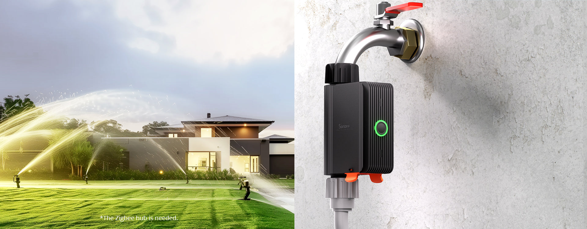 La valvola intelligente per acqua SONOFF Zigbee è un controller di irrigazione Zigbee 3.0 che si installa in pochi minuti tra il rubinetto e il tubo per automatizzare l'irrigazione del giardino. Offre programmi personalizzabili e modalità di capacità con irrigazione singola o ciclica, e registra fino a 6 mesi di dati sull'uso dell'acqua e sulla durata nell'app eWeLink per un'irrigazione ottimizzata e risparmio sui costi. Compatibile con hub Zigbee 3.0 e piattaforme open-source tramite ZBDongle-P o ZBDongle-E, garantisce un'automazione affidabile del giardino intelligente.