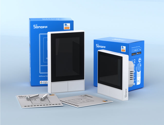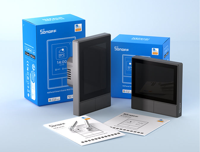 SONOFF NSPanel is an all-in-one smart scene wall switch combining touchscreen control, thermostat, and dual-channel switch in one sleek interface. Customize scenes, manage SONOFF devices, and control temperature settings with ease. View real-time weather, time, and temperatures. Supports Alexa, Google Assistant, and Siri Shortcuts for seamless voice control.