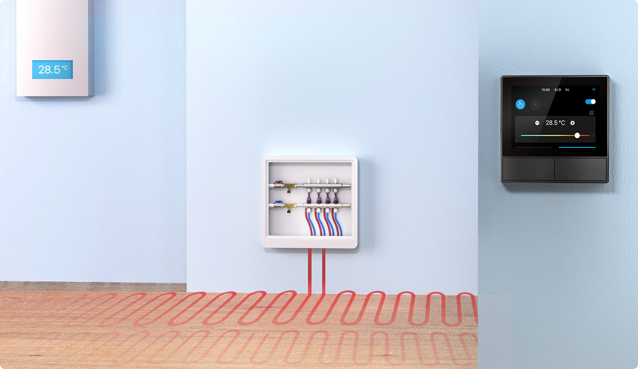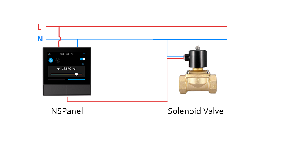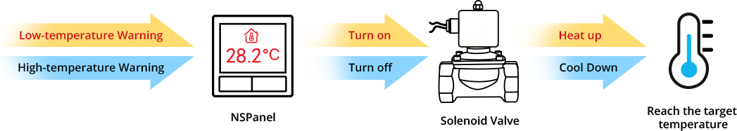NSPanel uses its built-in temperature sensor to trigger the switch on/off, maintaining the desired temperature.