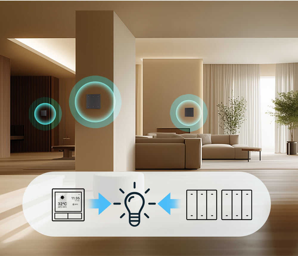 You can also place multiple R5 switches in the living room or other corners of your home to remotely control bedroom lighting, eliminating the hassle of wiring.