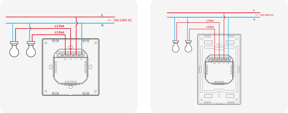 100-240V~ 50/60Hz 2A/Gang 4A/Total