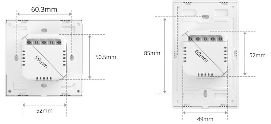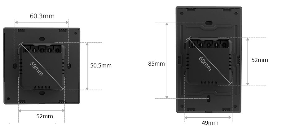 NSPanel-EU: 86x86x41.7mm, NSPanel-US: 120x74x41.7mm
