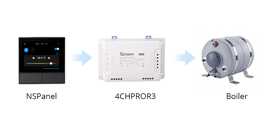 *In order to use NSPanel to remote control your boiler on and off, you may connect an additional dry contact product, such as 4CHPROR3.