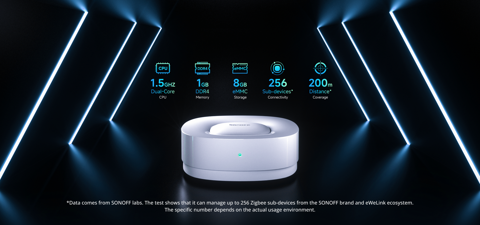 【Robust Device Capacity】Supports pairing with up to 256 SONOFF Zigbee sub-devices such as SNZB-06P, ZBMINIL2, S26R2ZB, SNZB-03P, and more. With Turbo Mode enabled, communication distance can reach up to 200 meters in open environments.