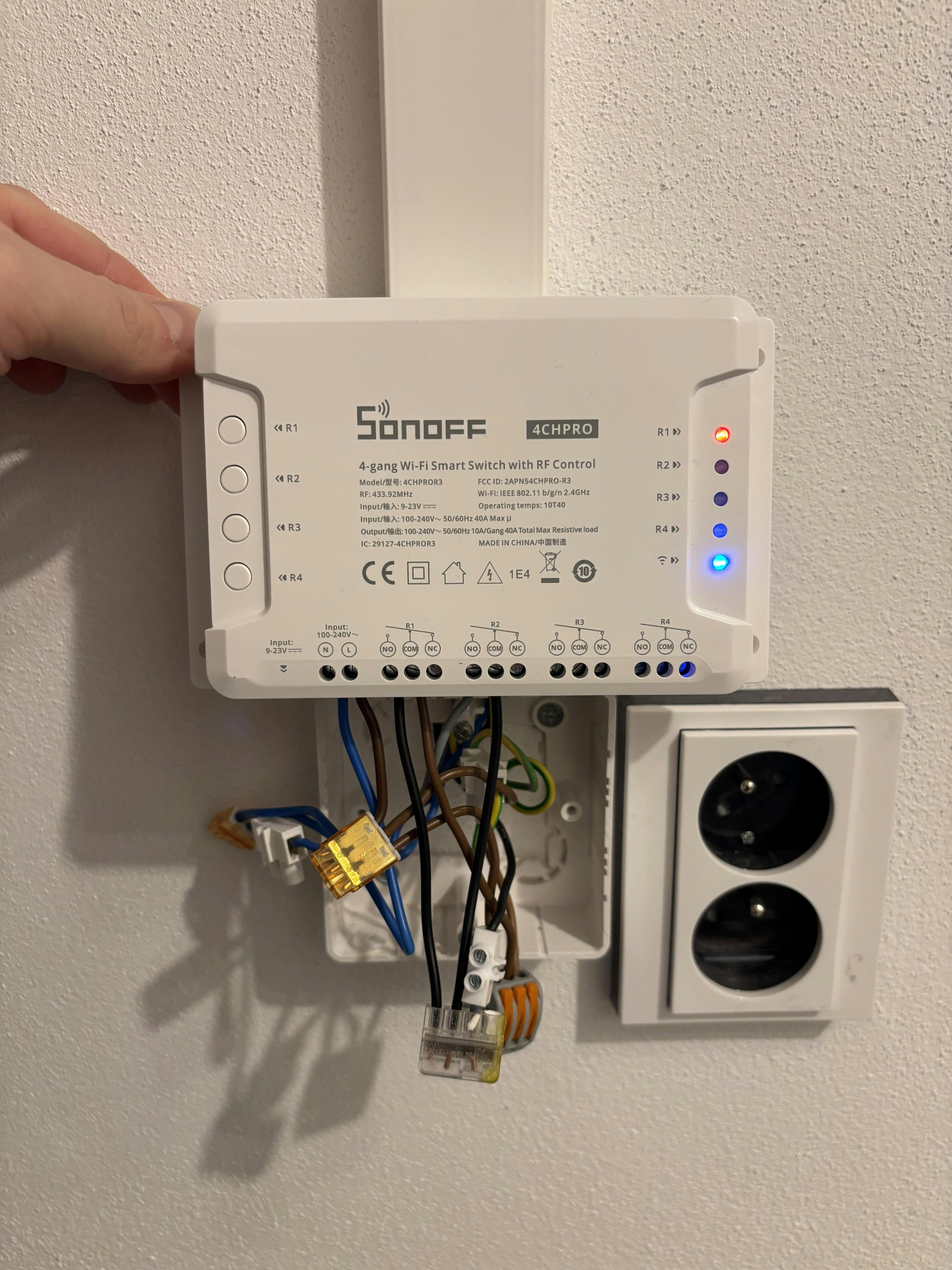 SONOFF 4CHR3/4CHPROR3 is a 4-gang Wi-Fi smart switch with RF and app control, ideal for remotely managing lights, pumps, or motorized devices. With support for dry contact mode, it's perfect for garage doors or curtains. Each channel handles up to 10A, and is designed for standard DIN rail mounting, ensuring a clean and professional layout. No hub required—just connect via Wi-Fi, control via eWeLink app, or use voice commands with Alexa and Google Home for hands-free operation.