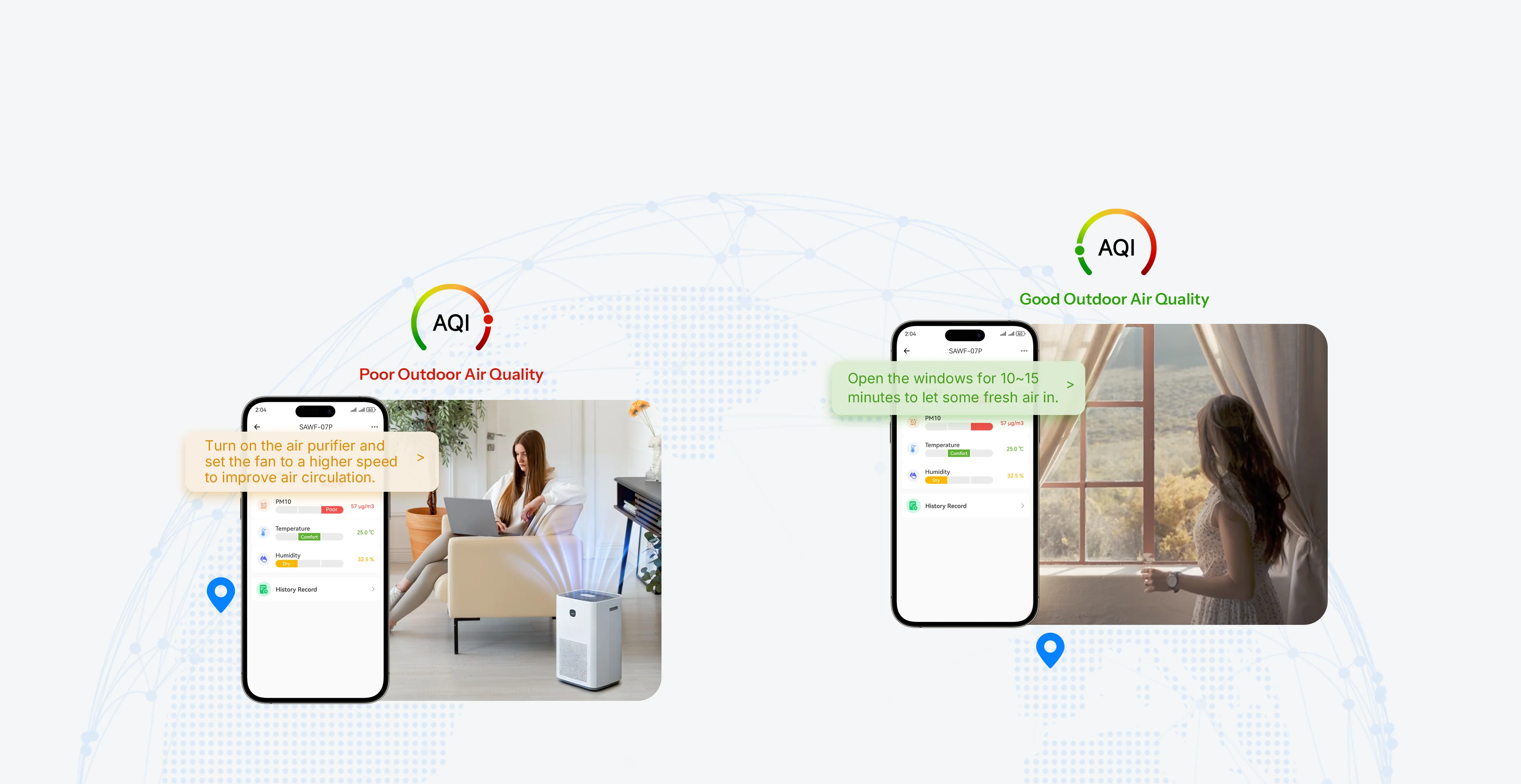 With a wider working coverage! AirGurad PM2.5 supports joining the Matter ecosystem, you can integrate it into your usual apps, such as Apple Home, Google Home and Alexa.