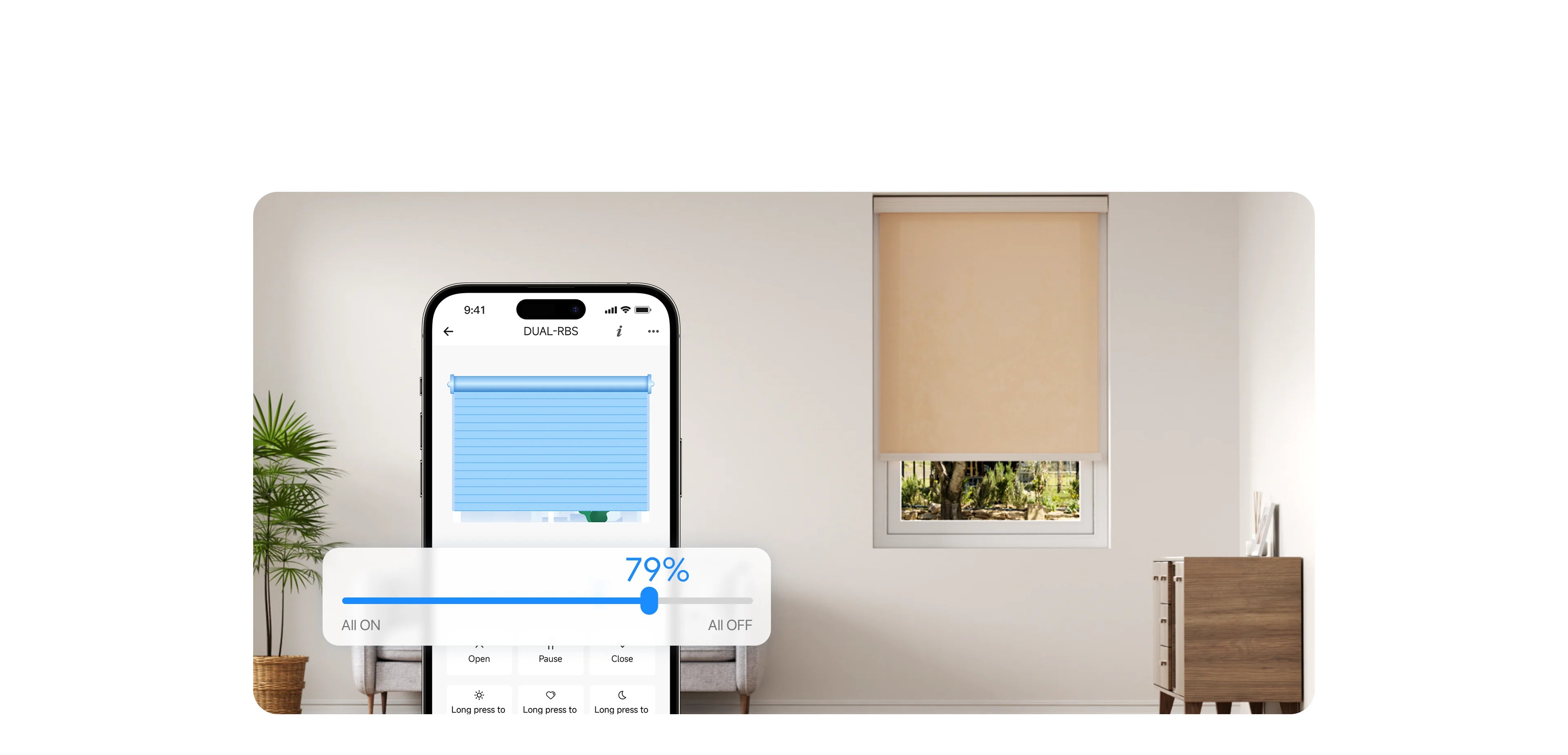 【Precise Percentage Adjustment】Adjust the opening of the roller blinds precisely according to your needs, ensuring that every beam of light is just right.