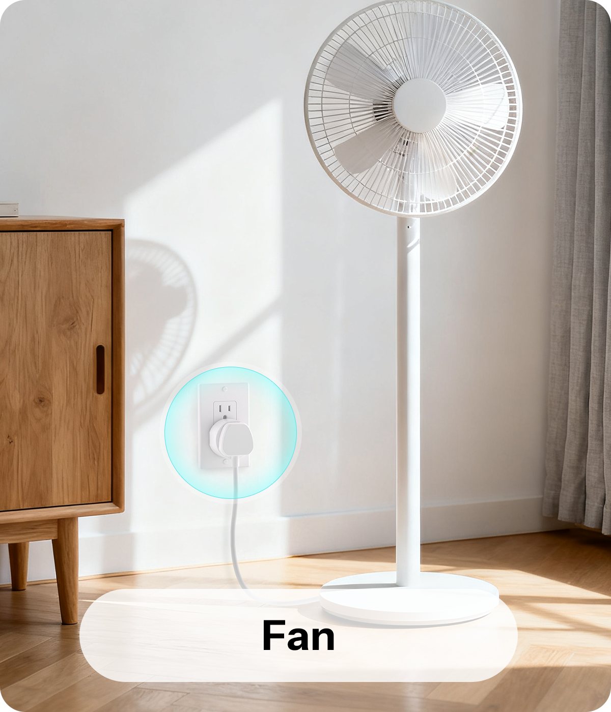 As tomadas inteligentes funcionam com a maioria dos aparelhos que têm um interruptor mecânico de ligar/desligar, como luzes, ventoinhas e máquinas de café.